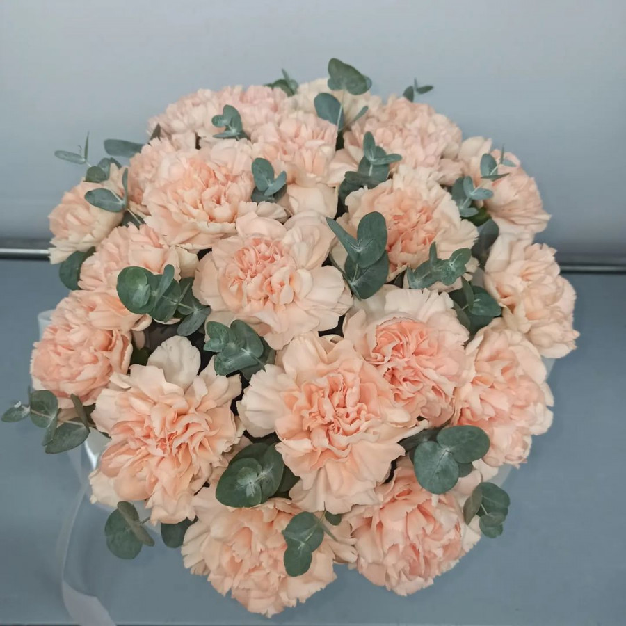 21 красивая кремовая гвоздика, оформленная в шляпную коробку, станет прекрасным подарком ко дню рождения или любому другому празднику. Гвоздики - символ элегантности, изысканности и роскоши, а кремовый цвет придает букету легкость и воздушность, создавая атмосферу нежности и уюта. Шляпная коробка подчеркивает красоту и оригинальность букета, а атласные ленты с бантами добавляют ему еще больше шарма и роскоши. Такой букет будет радовать получателя своим изысканным видом и приятным ароматом, напоминая ему о вашей любви и заботе.