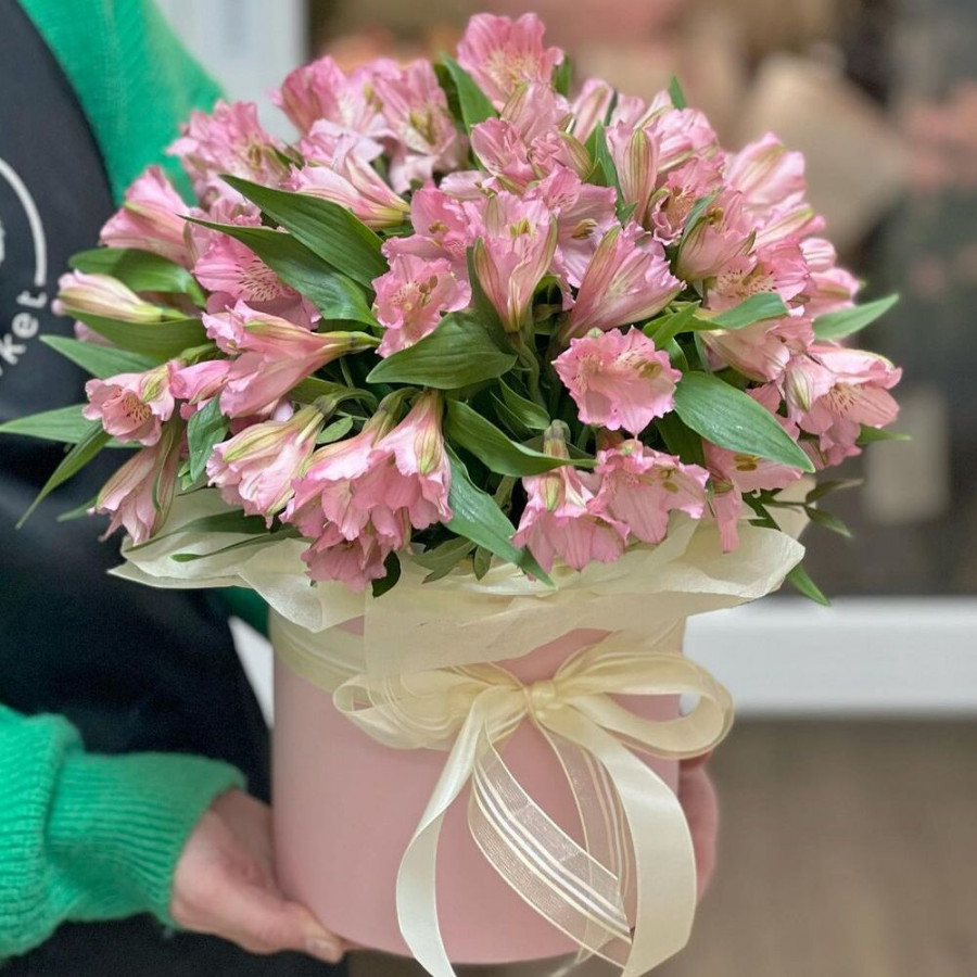 21 нежная и ароматная розовая альстромерия, оформленная в изящную шляпную коробку, - это прекрасный выбор для подарка на любой праздник. Альстромерии символизируют любовь, нежность и красоту, а розовый цвет добавляет букету романтичности и женственности. Шляпная коробка создает элегантный и утонченный образ, а атласные бантики и ленты добавляют букету изысканности. Такой букет долго будет радовать получателя своей красотой и ароматом, напоминая о вашем внимании и заботе.