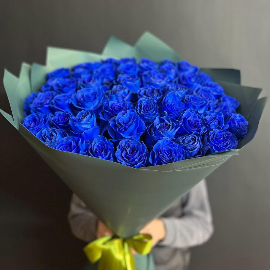 49 синих роз в дизайнерской упаковке в Семикаракорске