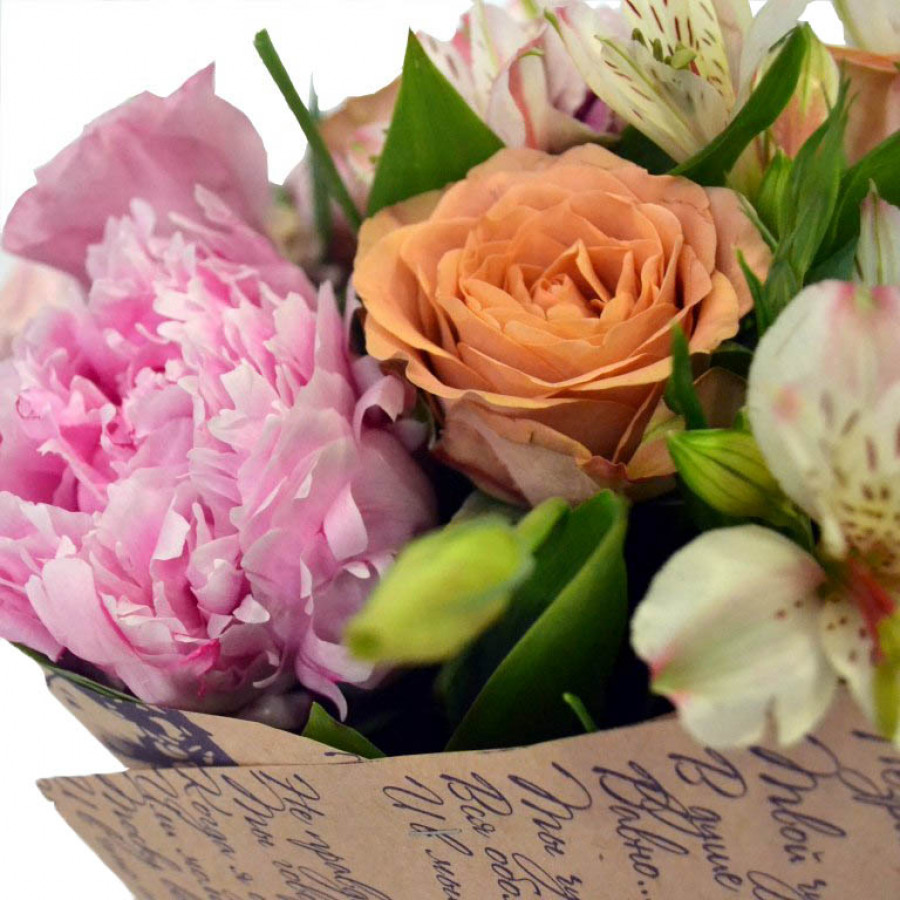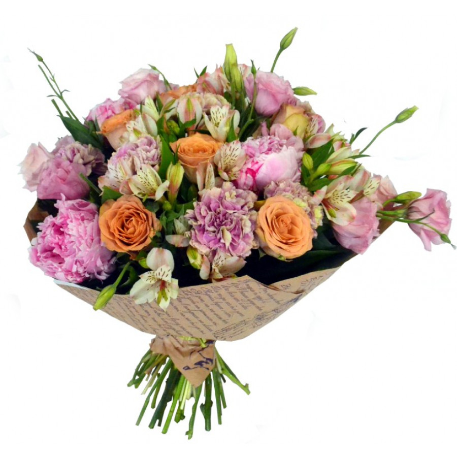 Изысканные нежные пионы, бутоны роз теплого персикового цвета, необычного цвета гвоздики, искрящиеся веточки альстромерии в прекрасном летнем букете станут достойными восхищения самой Афродиты - богини любви и красоты. Достаточно одного букета - и сердце неприступной красавицы будет покорено.