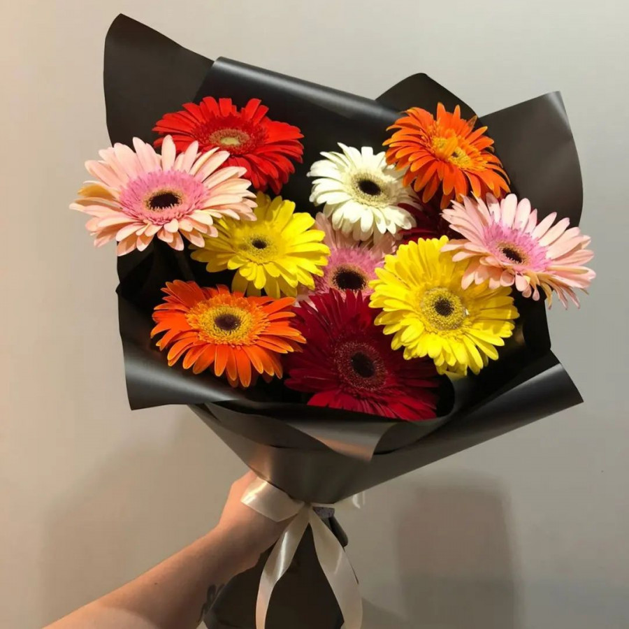 Букет из 11 разноцветных гербер – это яркий и жизнеутверждающий подарок, который непременно поднимет настроение любому получателю. Эти цветы с яркими жёлтыми, красными, оранжевыми и розовыми лепестками прекрасно сочетаются друг с другом, создавая гармоничную композицию, которая будет радовать глаз и наполнять пространство вокруг себя позитивной энергией. Такой букет идеально подойдёт для любого события – от дня рождения и свадьбы до корпоративных мероприятий и праздников. Он станет не только украшением праздника, но и символом вашей заботы и внимания к человеку, которому вы его дарите.