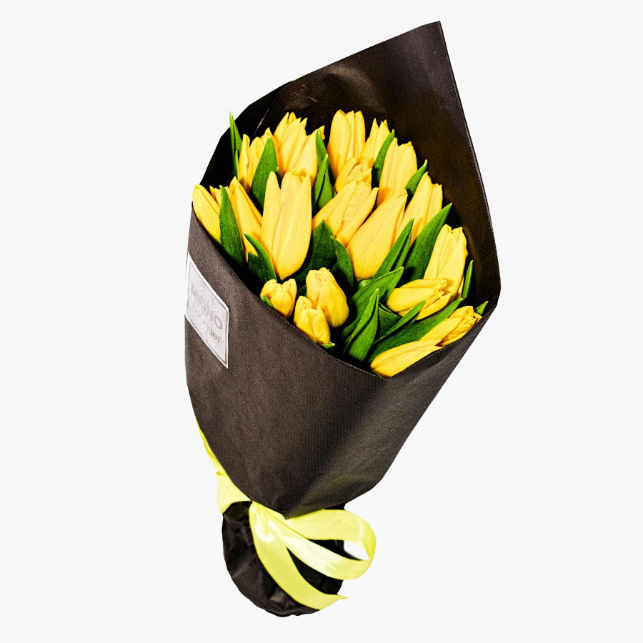 17 ярких жёлтых тюльпанов в стильной упаковке обеспечат весеннее настроение получательнице и улыбку. Порадовать любимую весной можно в любой день, подарив ей охапку солнечных лучиков с теплыми словами.