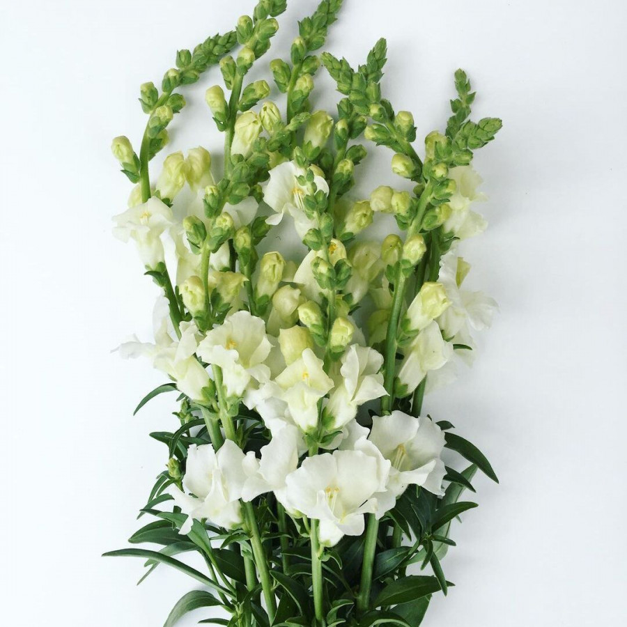 На фото букет из 7 белых антирринумов. В составе: антирринум 7 шт, атласная лента 1 шт, . Все цветы свежие и ароматные, букет красиво оформлен и отлично подходит для подарка. Доступна доставка цветов или самовывоз.