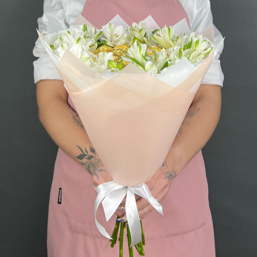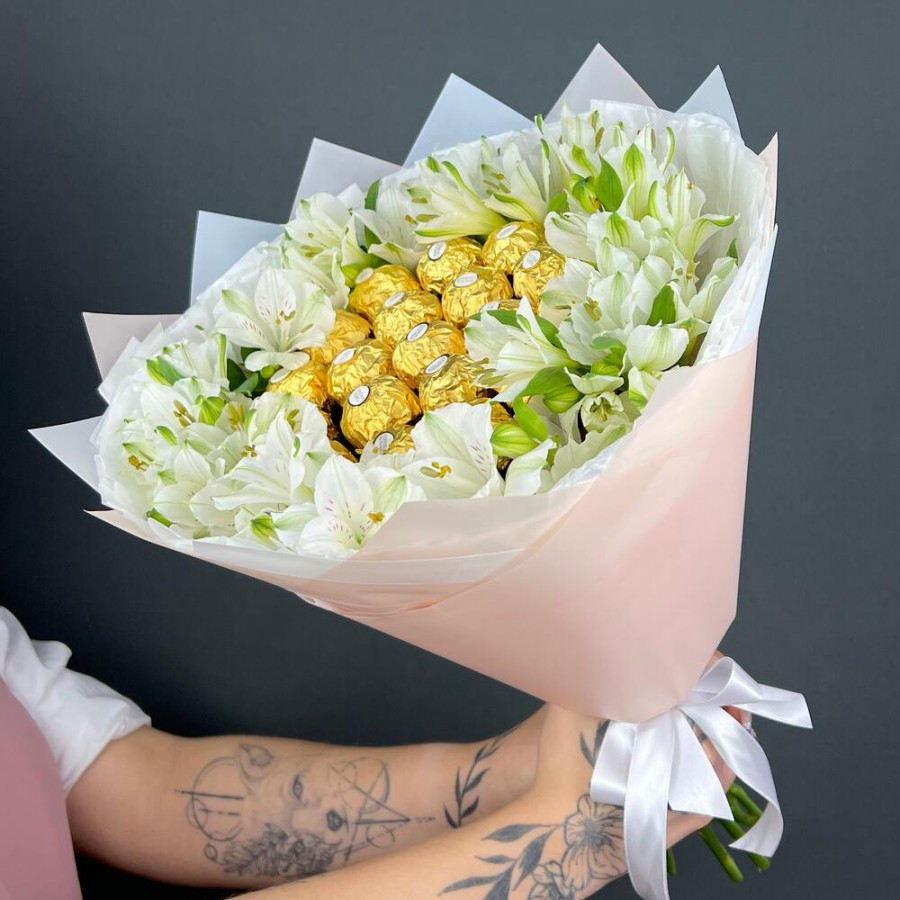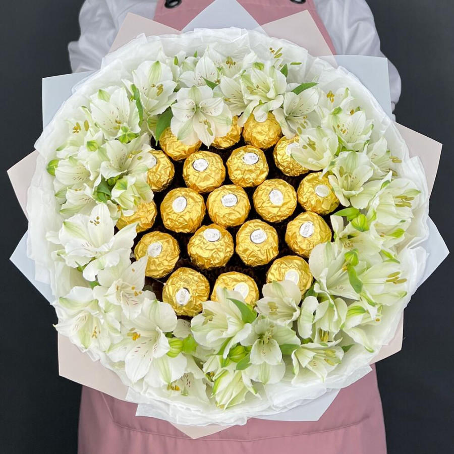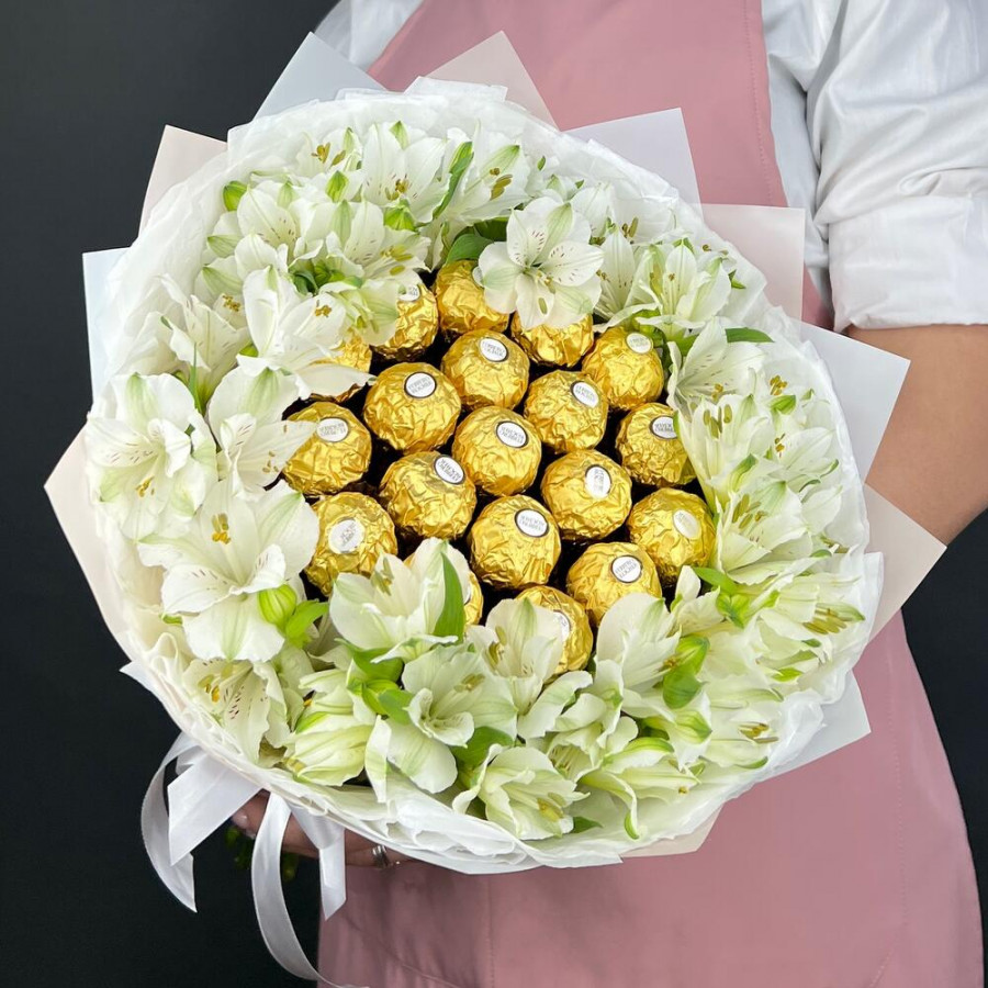 Букет из конфет Ferrero Rocher и и альстромерии в Семикаракорске