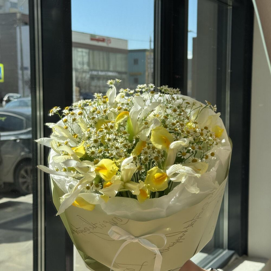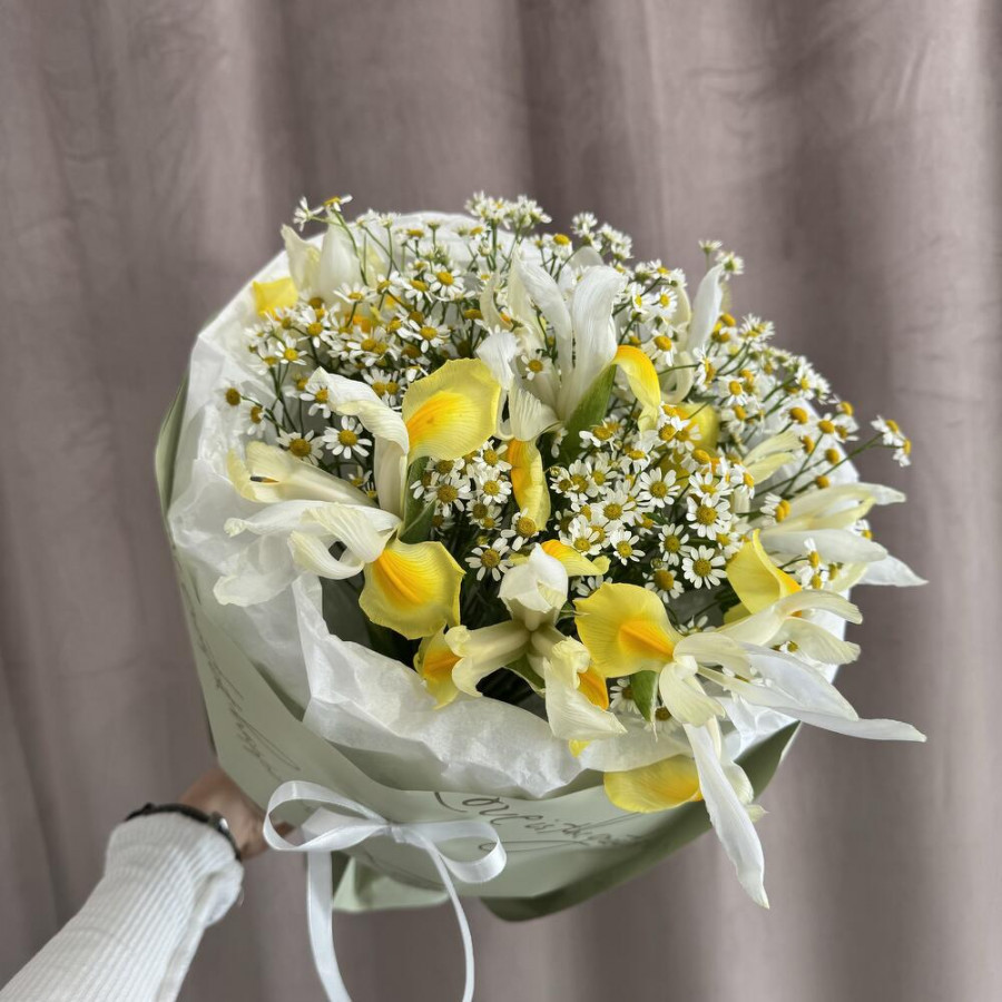 Букет из желтых ирисов и ромашек в Семикаракорске