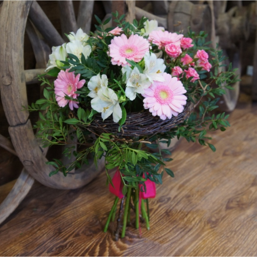 Перед выездом курьера пришлём фото свежесобранного букета, чтобы вы были спокойны