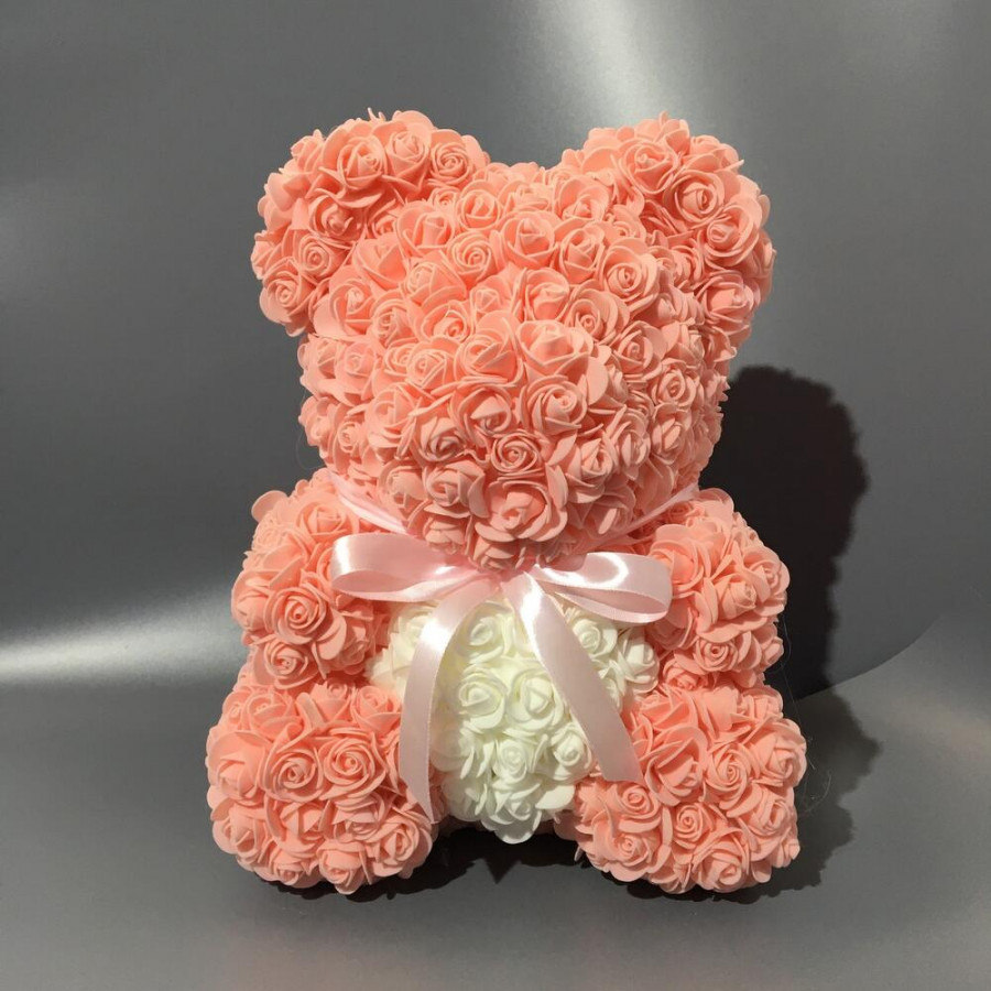 Мишка из роз «Персик» 37 см