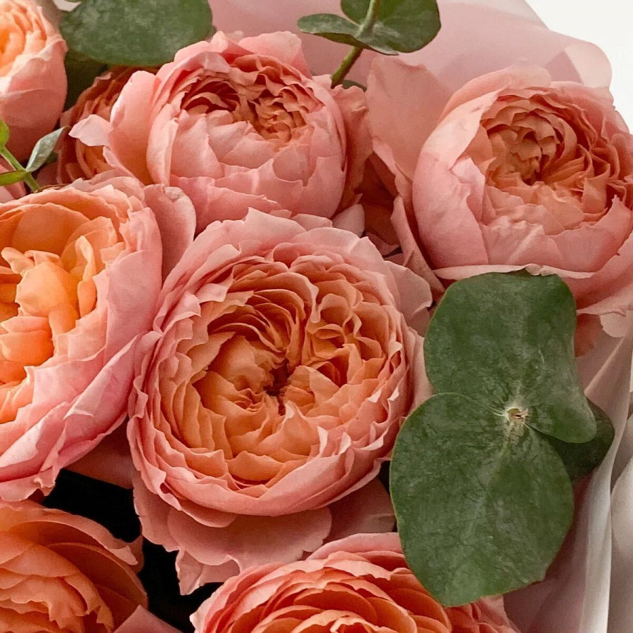 На фото монобукет из кустовой пиновидной розы. В составе: кустовая пионовидная роза 15 шт, крафт-бумага 1 шт, атласная лента 1 шт, . Все цветы свежие и ароматные, букет красиво оформлен и отлично подходит для подарка. Доступна доставка цветов или самовывоз.