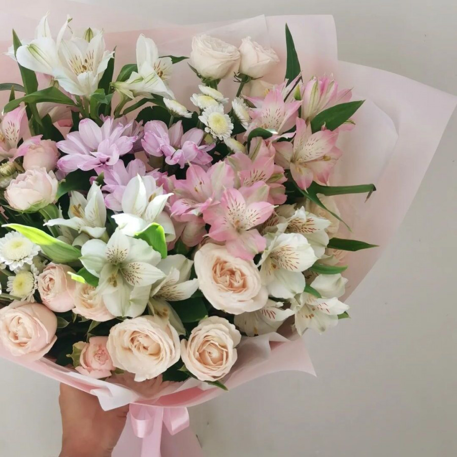 Перед выездом курьера пришлём фото свежесобранного букета, чтобы вы были спокойны