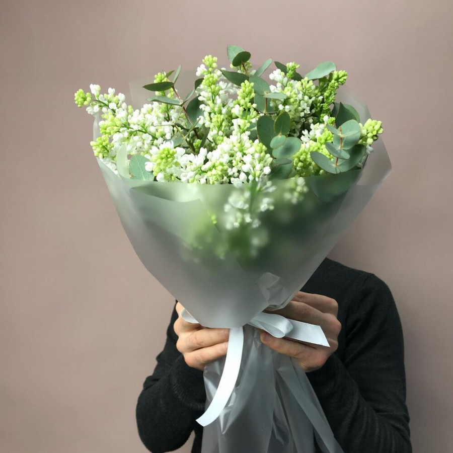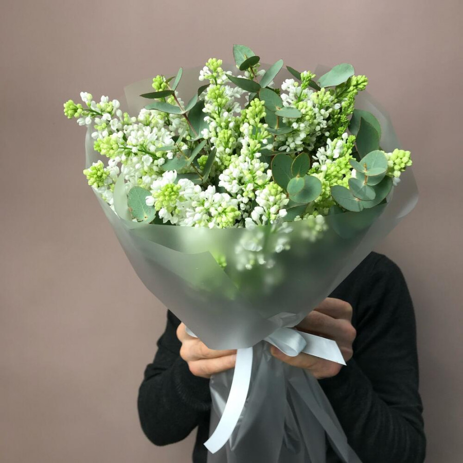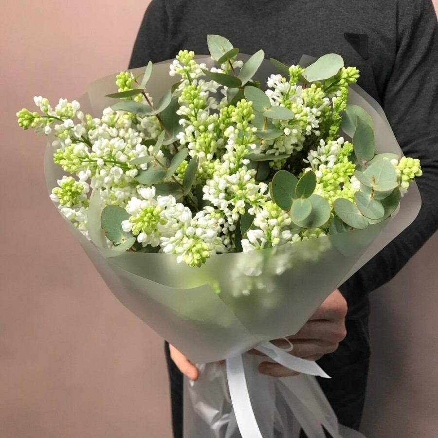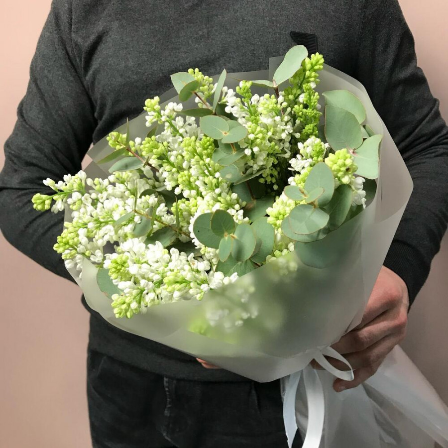 На фото свадебный букет из белой сирени. В составе: сирень 9 шт, эвкалипт 2 шт, дизайнерская упаковка 2 шт, атласная лента 1 шт, . Все цветы свежие и ароматные, букет красиво оформлен и отлично подходит для подарка. Доступна доставка цветов или самовывоз.